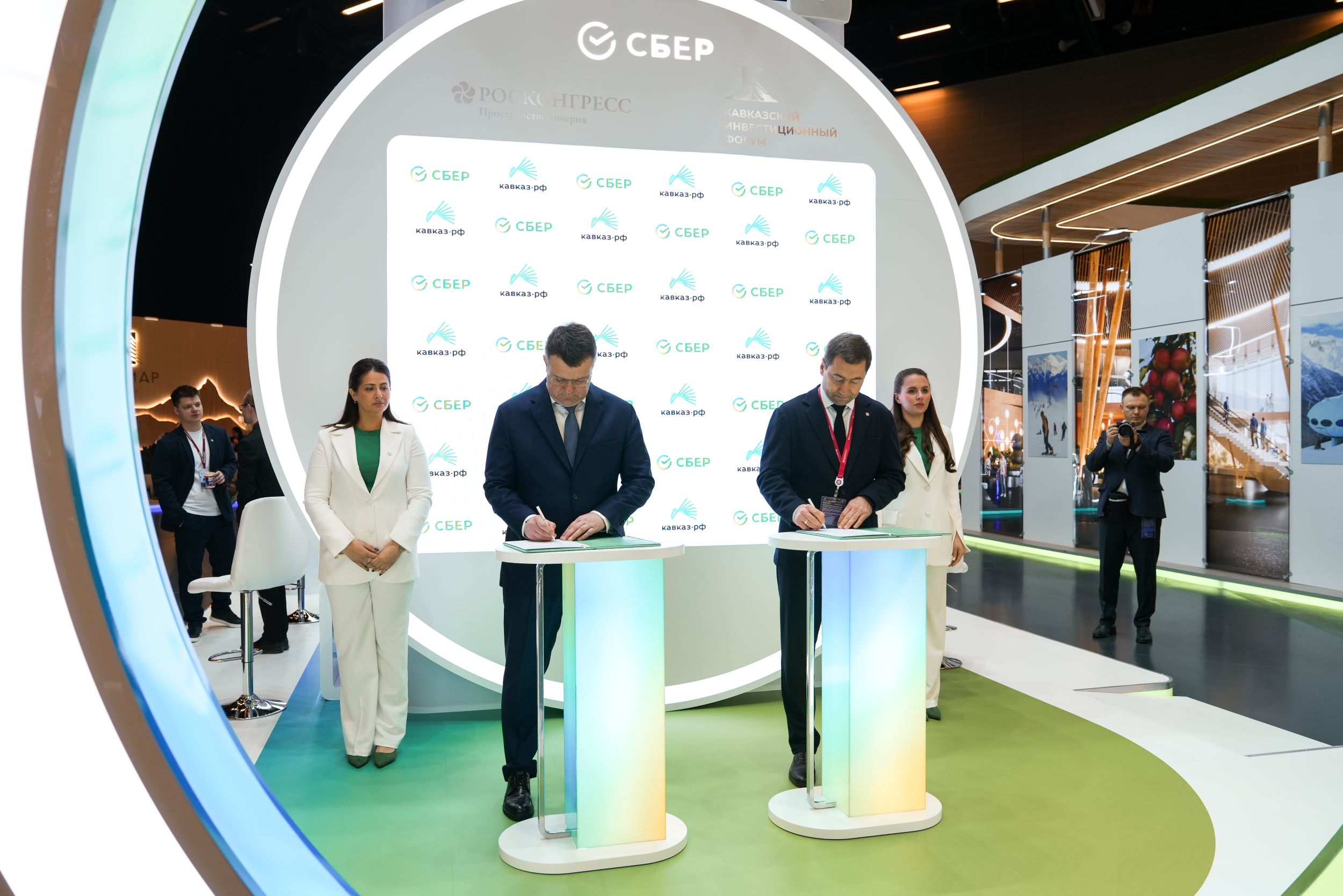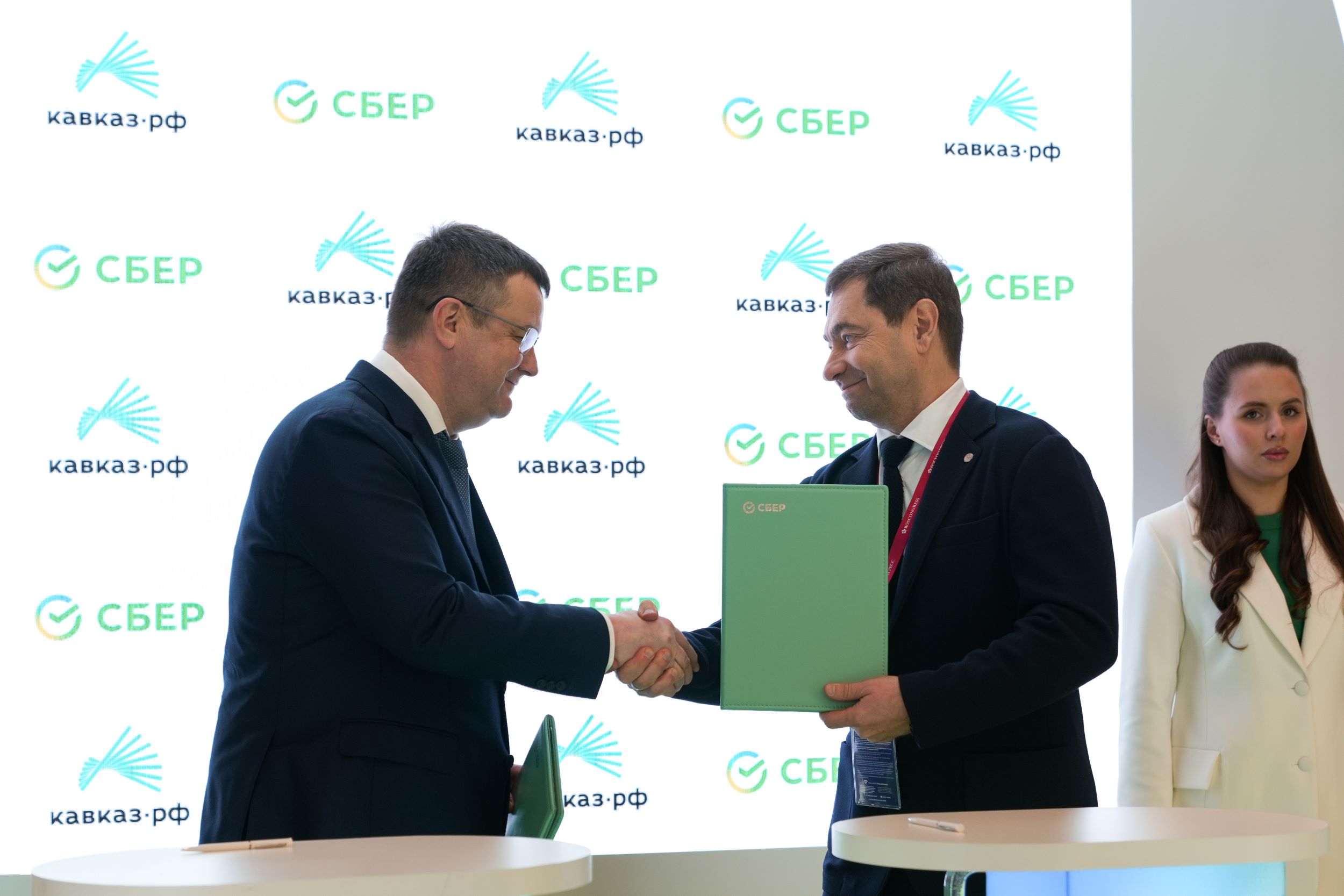 29 апреля в рамках Кавказского инвестиционного форума председатель Юго-Западного банка Сбербанка Анатолий Песенников и генеральный директор Кавказ.РФ Андрей Юмшанов подписали соглашение о намерениях по участию Сбера в реализации цифрового проекта Кавказ.РФ –«Инвестиционный хаб».