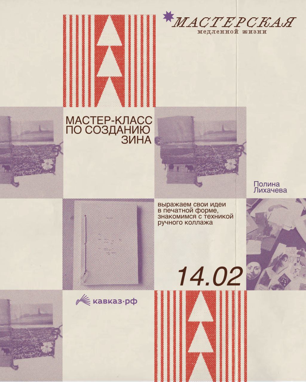 «Зин — это авторский мини-журнал. Участникам предстоит пройти весь путь с нуля: от идеи и текстов до изображений, верстки и ручной сборки, распечатать любимые фото, собрать коллажи, попробовать линогравюру и сделать собственные печати», — рассказывает автор.