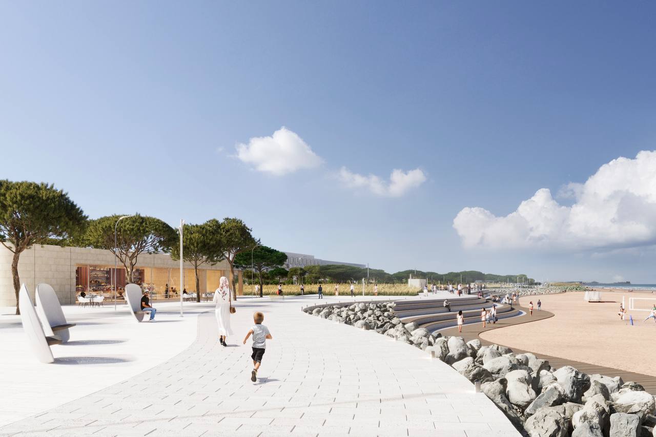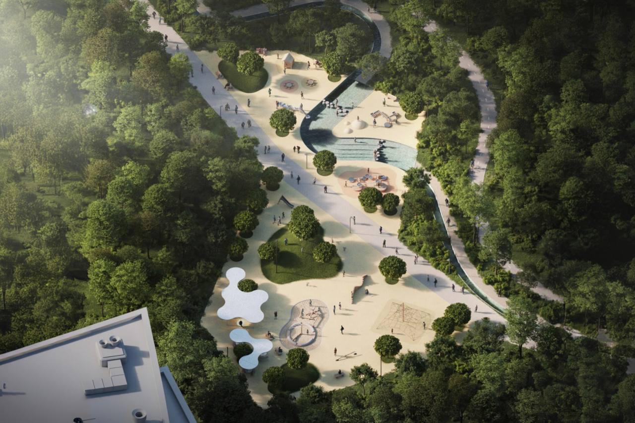 Инфраструктуру дополнят павильоны с пунктами проката, туалетами комнатами матери и ребенка, амфитеатры на бульваре и набережной, трибуны на спортивных площадках и лестницы.